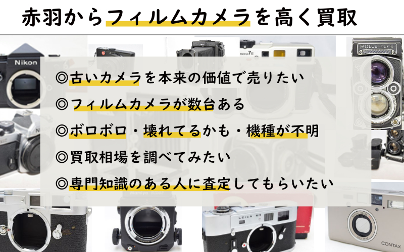 古いカメラや壊れたものでも査定可能で、赤羽エリアでは出張買取が便利。
