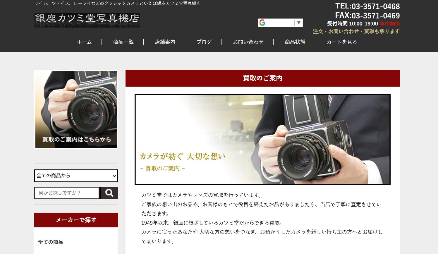 銀座カツミ堂は、創業100年以上の歴史を持つ老舗カメラ店で、中古カメラの販売と買取を手がけています。